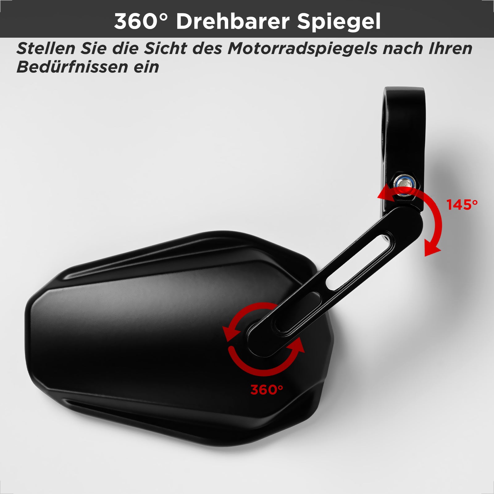 evermotor Motorcycle Rear View Mirror, E-Approved, 360° Rotatable, Handlebar End Mirror for 22 mm and 25.4 mm Handlebars, Universal, Black