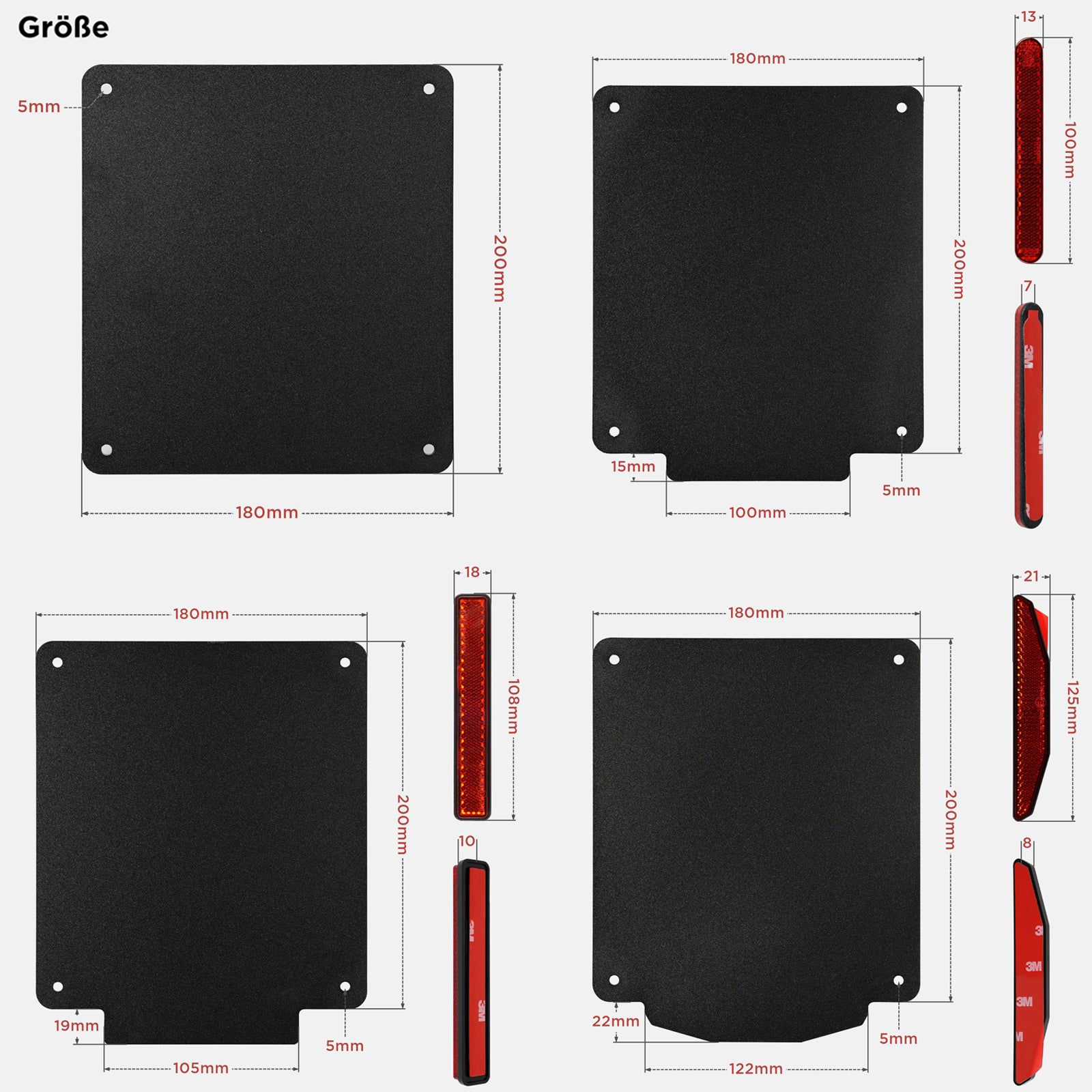 Universelle Größe 180x200 mm – Passend für die meisten Motorrad-Kennzeichen in Deutschland. Ideal für individuelle Umbauten oder als Ersatzhalterung. Für ein optimales Nutzungserlebnis empfehlen wir, vor dem Kauf kurz die Maße Ihres Kennzeichens zu überprüfen.
